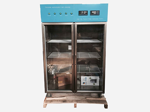 混凝土碳化试验箱是进行混凝土碳化试验箱的专用设备,产品符合GB/T50082-2009《普通混凝土长期性能和耐久性试验方法标准》中碳化试验要求的zhuan用试验设备。本机采用原装进口的二氧化碳分析仪:本分析仪采用红外探测原理,结合国内xian jin 的智能仪表,具有使用jing du 高、寿命长的特点:温湿度传感器是采用国内xian jin 的集成感应模块加智能仪表组成。本产品具有控制精度高,操作简单,箱内温、湿、浓度直观数显。